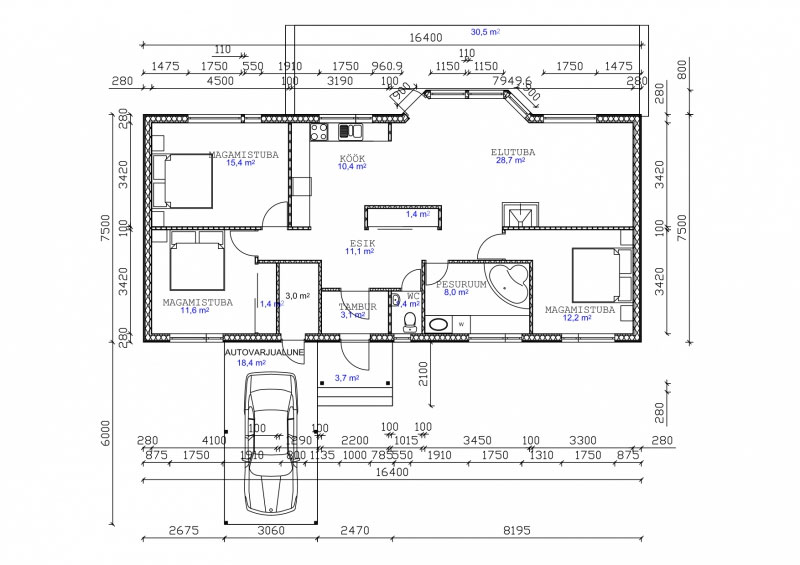 Vundamendi pind: 81,3 m2